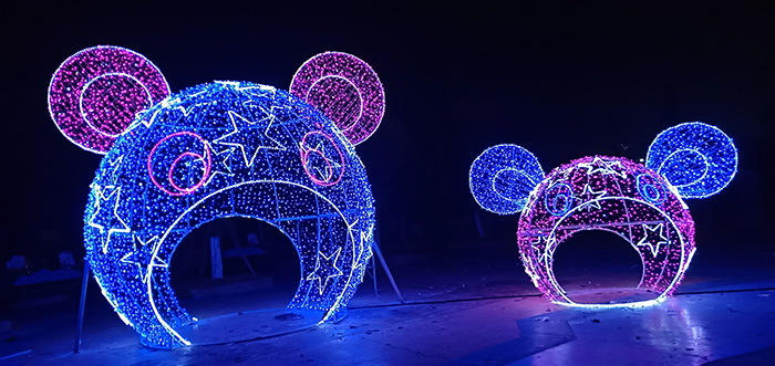 龍君根據(jù)客戶(hù)要求,結(jié)合景區(qū)游玩主題,搭配使用了米奇頭燈光拱門(mén)、藍(lán)白相間的天幕造型、海洋天幕以及海馬燈光造型,與海洋主題和兒童樂(lè)園主題相呼應(yīng),使景區(qū)的夜晚增添了一份特別的美。整套燈光造型以海洋藍(lán)為主色調(diào),熠熠的藍(lán)光使景區(qū)更加明亮。