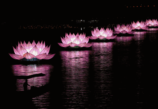 放荷花燈在古代中國(guó)有祈福許愿的含義,同時(shí)代表著闔家團(tuán)圓,龍君為濰州古城深耕濰水文化復(fù)興之路設(shè)計(jì)“滿湖蓮花”的意象,傳承民間彩燈藝術(shù)。