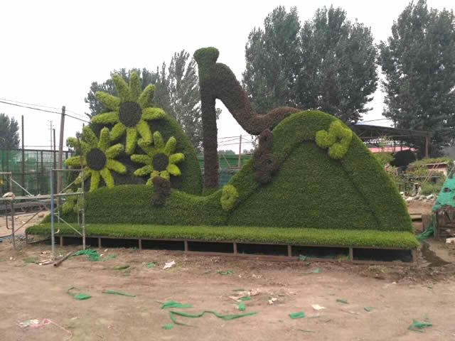 我們公司打造出來(lái)的仿真植物園林綠雕做到了以假亂真,無(wú)論近觀遠(yuǎn)視都難以辨真假;外形牢固,仿真綠雕,仿真植物抗老化特性強(qiáng)。我們帶領(lǐng)一支優(yōu)秀的設(shè)計(jì)團(tuán)隊(duì),卡通動(dòng)物仿真綠雕,堅(jiān)持以市場(chǎng)信息為依據(jù),認(rèn)真考慮顧客意見(jiàn),為客戶打造稱心如意的園林綠雕。綠雕制作-綠雕景觀 1、綠雕骨架結(jié)構(gòu)制作:綠雕骨架的材料一般可以有鋼筋、鐵絲、角鐵、不銹鋼等等,一般根據(jù)綠雕大小和形狀選擇制作骨架的材料,在材料上的選擇,首要的就是綠雕骨架牢固度。綠雕牢固都能擺放長(zhǎng)久,不會(huì)出現(xiàn)意外事故。一般在大型綠雕制作過(guò)程中,通常會(huì)采用角鐵、鋼筋、鐵絲這些柔韌性,受力強(qiáng)的材料。小型綠雕在制作過(guò)程就可選擇鋁絲材料,優(yōu)點(diǎn)是比彈性小,不容易晃動(dòng),缺點(diǎn)是承重力有限。 2、綠雕基質(zhì)栽培:在綠雕骨架制作完成后,將遮罩網(wǎng)作為外框架的表面,遮罩網(wǎng)材質(zhì)一般使用遮陽(yáng)網(wǎng),將遮陽(yáng)網(wǎng)從下往上縫制并裝訂牢固。遮陽(yáng)網(wǎng)上填充栽培基質(zhì),以粘土和蛭石為主,適當(dāng)直譯滌棉、草悄、農(nóng)肥等材料,保證植物栽植后的水肥,還增加拉力。 3、綠雕材料的選材:要求枝葉細(xì)小、植株緊密,可以用生長(zhǎng)緩慢的多年生植物為主,如金邊過(guò)路黃、半柱花和矮麥冬等,傳統(tǒng)綠雕主要材料以五色草為主。因?yàn)槲迳葜仓臧?,分枝力?qiáng),枝繁葉密,耐修剪,葉色多變,色澤鮮艷,喜溫畏寒耐干熱忌低溫,植株矮小的還可選用如四季海棠、孔雀草等,它們?cè)诤迟|(zhì)的肥沃沙壤或壤土上生長(zhǎng)良好。為了豐富色彩可搭配:金葉景天、佛甲草、彩葉草、四季海棠、仙人球、小葉紅草、玫紅色的玫紅草、銀灰色的芙蓉菊等。植物材料應(yīng)采用穴盤(pán)苗,因其根部較小易于栽植,栽后緩苗期短。 ![]()