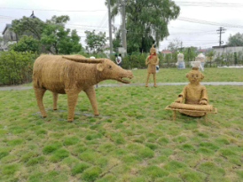 3.最后環(huán)節(jié) (上色): 在稻草工藝形象編扎完成后, 為了豐富藝品的神態(tài), 讓藝品更形象, 在油漆進(jìn)行調(diào)配后,用氣泵噴漆槍或手工描繪的形式給稻草工藝品上色。 另外,為了增長(zhǎng)產(chǎn)品的使用壽命,我們還需要做“防水”處理,在稻草工藝品表面噴涂一層透明清漆, 通常情況下,不做防水處理的稻草工藝品在室外右以保存三個(gè)月左右,而做好防水處理的可以保存一年左右。