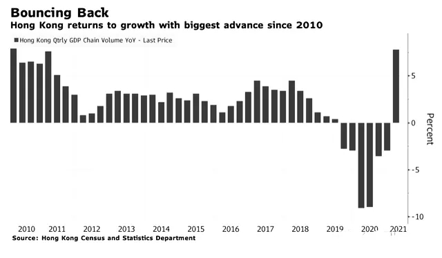 前幾日,香港政府公布,第一季經(jīng)濟按年實(shí)質(zhì)增長(cháng)7.9%,較初值高0.1個(gè)百分點(diǎn),結束連續六個(gè)季度收縮的情況。