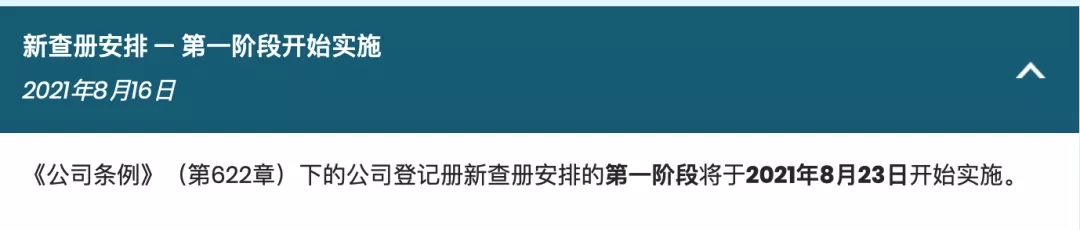 據香港公司注冊處8月16日消息,《公司條例》(第622章)下的公司登記冊新查冊安排的第一階段將于2021年8月23日開(kāi)始實(shí)施。