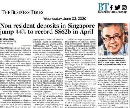 - 根據新加坡金融管理局的數據顯示,今年4月份新加坡本地銀行的外幣存款相比去年同期增長(cháng)了近三倍,達到了創(chuàng )紀錄的270億新幣,而非居民存款也猛漲了44%至620億新幣,達到了1991年有記錄以來(lái)的最高水平。