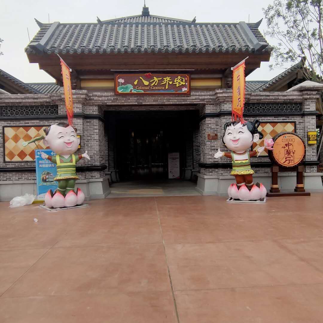 說到這里,不得不像大家介紹一下這對可愛的吉祥物寶寶:“磁寶”“磁貝”的形象設計以磁州窯陶瓷娃娃為主體形象,代表著磁州瓷器的悠久歷史,凸顯了磁縣特有的傳統藝術和精湛的制瓷工藝;同時“磁寶”手持荷葉,“磁貝” 手持蓮花,腳下均為蓮花底座,荷花不僅是磁縣特色產業(yè),也彰顯著磁縣優(yōu)美的自然風光。吉祥物服飾顏色采用了紅、綠、黃等中國民族色彩,象征著吉祥、喜慶、熱情,“磁寶”“ 磁貝”面帶笑容雙手張開充滿朝氣,歡迎著四方賓朋,展現出一個健康、熱情、快樂、陽光的卡通形象。龍君展覽制作出來的吉祥物無論是色彩的使用,還是造型的飽滿度,都是無可挑剔的,相信看到的游客都能感受到它們傳遞的熱情和陽光。